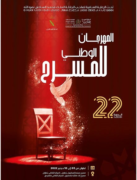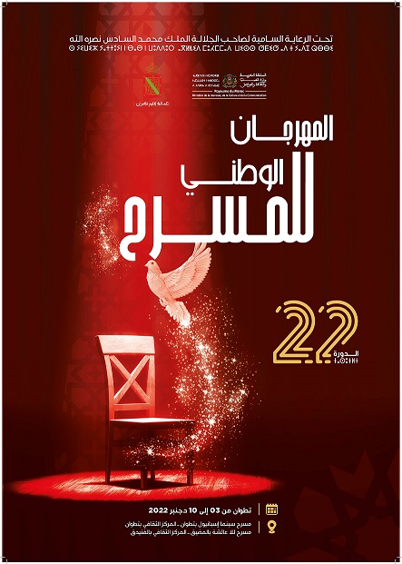 اعلنت وزارة الشباب والثقافة والتواصل –قطاع الثقافة- عن تأجيل فعاليات الدورة الثانية والعشرين للمهرجان الوطني للمسرح التي كان مقررا تنظيمها بمدينة تطوان من 03 إلى 10 دجنبر 2022 الجاري وذلك إلى غاية الفترة الممتدة من 15 إلى 22 دجنبر 2022