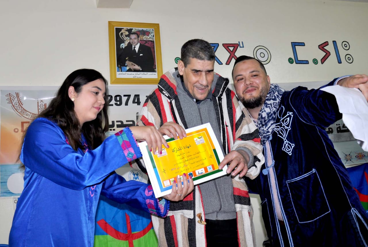 وفي ختام الحفل تم توزيع شواهد المشاركة والتقدير والهدايا على المشاركين من العارضين لينتقل الجميع الى حفل تذوق مختلف المأكولات والفواكه الجافة وغيرها من الاطباق التي تميز فنون العيش الامازيغي او كانت تصاحب مختلف مظاهر وطقوس الاحتفال لدى السكان الامازيغ أملا في الحفاظ على هذا الموروث المادي واللامادي