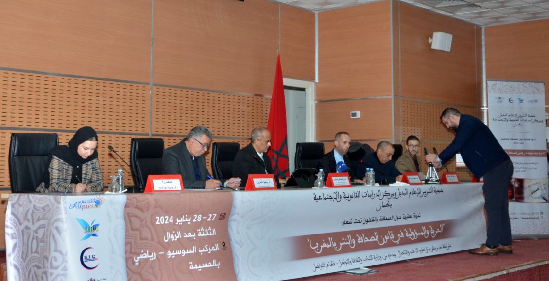 احتضنت مساء اليوم، السبت 27 يناير 2024، قاعة الندوات بالمركب السوسيو – رياضي بمدينة الحسيمة أشغال الندوة الوطنية حول “الصحافة والقانون” التي نظمتها جمعية التبريس للإعلام البديل ومركز الدراسات القانونية والاجتماعية تحت شعار “الحرية والمسؤولية في قانون الصحافة والنشر بالمغرب” بشراكة مع مركز سياق لعلوم الإعلام والاتصال وبدعم من وزارة الشباب والثقافة والتواصل، قطاع التواصل.