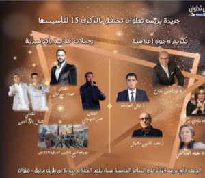 وبنفس بالمناسبة سيتم منح شواهد تقديرية لصحفيين سابقين بجريدة “بريس تطوان” بصموا على مشوار حافل من العطاء في المجال الإعلامي، مع تقديم وصلات غنائية وكوميدية بمشاركة الفنانين: عصام سرحان، عمر الميموني، جوق الحضرة الشفشاونية، والثنائي الكوميدي جمال ونور الدين